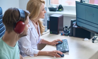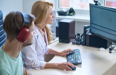During a hearing test, an audiologist will assess your hearing through various sounds and frequencies to determine your hearing capability.